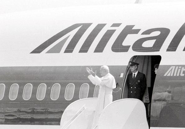 El Pontífice a su arribo al aeropuerto de la base aérea de Ilopango.