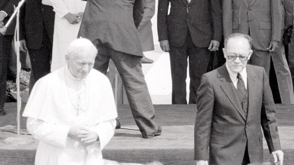 El Papa Juan Pablo II junto con el presidente salvadoreño Álvaro Magaña