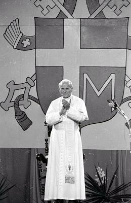 El Papa Juan Pablo II bendiciendo a los salvadoreņos.