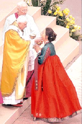 CEREMONIA. Benedicto XVI da la comunión en su primera misa como pontífice oficiada ayer.