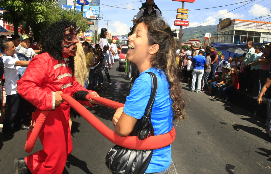 El diablo puso el toque de humor en el desfile del correo que da inicio a las fiestas Agostinas en honor al Divino Salvador del Mundo. FOTO LPG/ GIOVANNI LEMUS