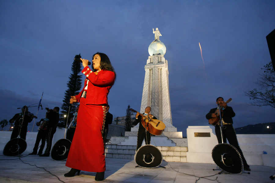 agosto 1, 2012Cecilia Regalado junto a su mariachi, dbrindaron una serenata al Divino Salvador del Mundo en la inauguración de las fiestas agostinas. FOTO DE LA PRENSA/ FRANCISCO ALEMÃN