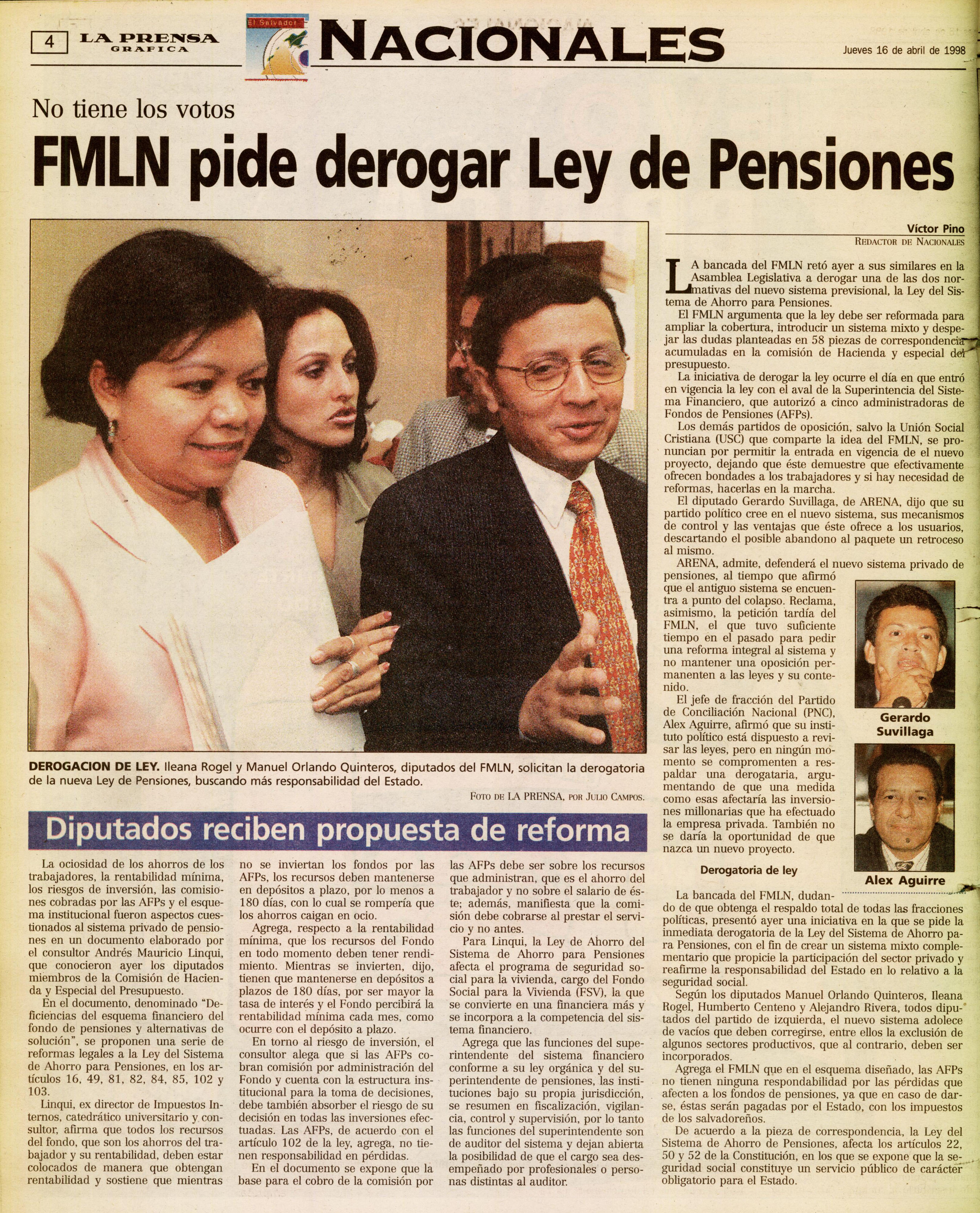 Lo importante es que desde el 15 de abril de 2017, ellas serán las primeras salvadoreñas obligadas a pensionarse bajo el sistema previsional que se implementó hace 15 años. El mismo camino por el que todos los nuevos pensionados tendrán que transitar tarde o temprano.